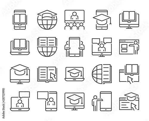 icon, learning, education, online, illustration, vector, set, symbol, image, outline, line, flat, thin, linear, simple, object, isolated, editable, stroke, computer, book, study, school, student, university, technology, course, cyberspace, college, cognition, communication, media, video, tutorial, laptop, library, web, business, training, teacher, mobile, seminar, science, e-learning, people, distance, graduate, information, concept