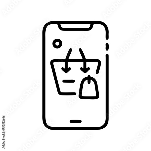 online, shopping, mobile, phone, basket, arrow, tags, e-business, store, digital, purchase, retail, consumer, technology, application, cyberspace, screen, device, market, shop, buy, sell, order, product, service, client, cart, payment, delivery, discount, offer, promotion, website, app, platform, business, commerce, transaction, network, connection, communication, information, access, navigation, interface, design, symbol, line
