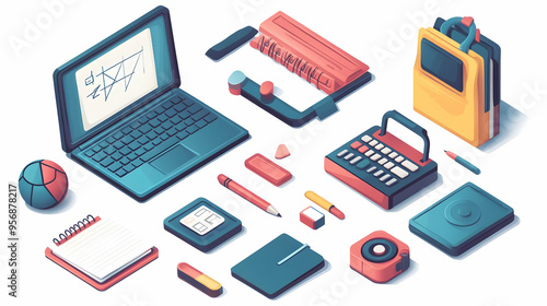 isolated, tool, vector, white background, study, technology, learning, student, laptop, e-learning, degree, higher education