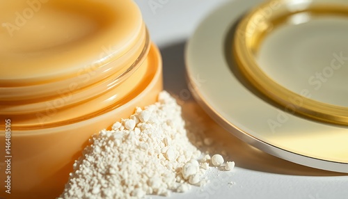 cosmetic, jar, amber, powder, white, plate, gold, make-up, beauty, product, cream, skincare, container, shiny, studio, still, life, elegant, bright, background, cosmetic, luxury, wellness, health, facial, treatment, body, care, arrangement, circle, no, people, macro, closeup, stack, tableware, gold, art, object, pile, circular, clean, isolated, collection, design, artistic, shot, decorative, style