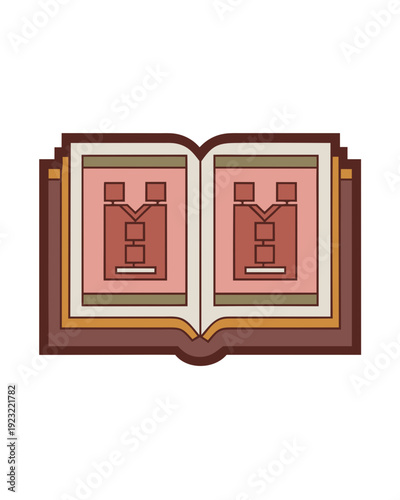 Open Book Icon with Flowcharts on Pages, symbolizing knowledge, learning, and organization