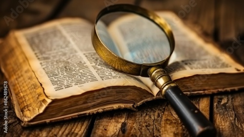open, book, magnifying, glasses, highlighting, text, high, quality, image