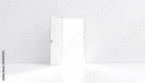 open door, bright light, opportunity, hope, future, success, potential, possibility, doorway, entrance, way, path, journey, transition, change, growth, progress, development, advancement, breakthrough, innovation, aspiration, ambition, dream, goal, vision, perspective, freedom, escape, exit, interior, room, minimalist, clean, simple, modern, design, architecture, light, bright, white background