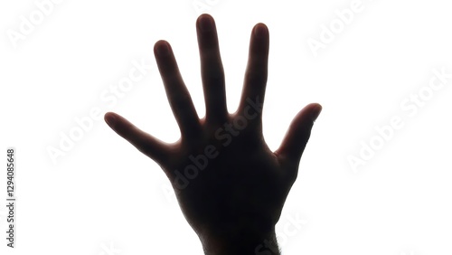 Open Hand Silhouette: Gesture, Communication, Human Anatomy, Five Fingers, Palm, Backlit, Dark Silhouette, High Contrast, White Background, Hand Shape