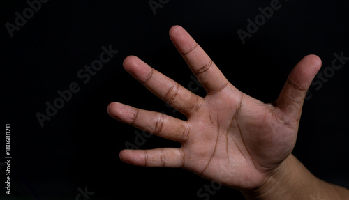 Open hand with five spread fingers facing the camera, shown with clear skin detail and bright studio lighting, representing stop, signal, counting, or communication.