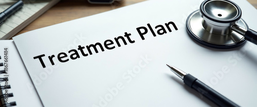 Open journal with 'Treatment Plan' heading and stethoscope, collaborative healthcare and patient empowerment tool