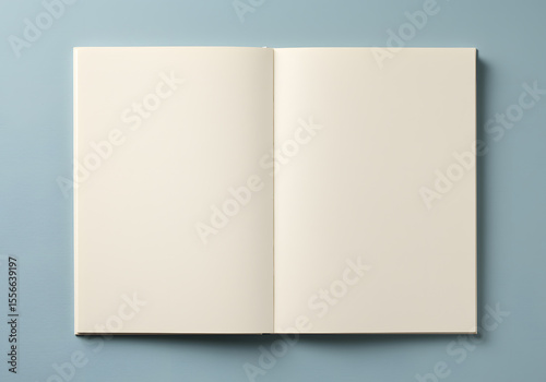 Open Notebook with Blank Pages on a Light Blue Background Ready for Writing