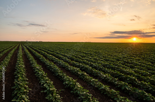 soybean, soybean, field, land, sunset, agricultural, agriculture, country, countryside, crop, darkening, dusk, farm, farming, farmland, growing, sundown, twilight, food, green, leaf, nature, landscape, rural, sky, growth, leaf, cultivated, row, industry, monoculture, cloud, bean, plant, summer