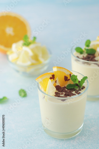 Orange lemon citrus milk mousse in glasses