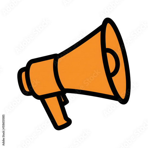 megaphone, loudspeaker, announcement, icon, symbol, orange, black, outline, vector, graphic, communication, marketing, advertising, promotion, news, alert, attention, broadcast, message, information, sound, voice, call, shout, yell, speak, talk, design element, interface, app, website, digital, online, notification, warning, urgent, important, simple, flat, bold, illustration, graphic design, isolated