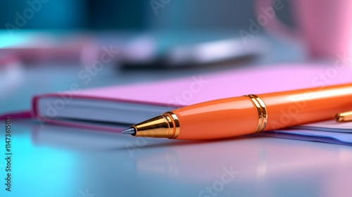 pen, notebook, orange, writing, stationery, desk, colourful, student, school, office, study, supply, education, highlighter, book, closeup, workspace, tool, learning, shiny, note, paper, work, productivity, modern, clean, sharpened, back to school, classroom, bright, sharp, stationary, detail, vibrant, metallic, homework, office supply, closeup