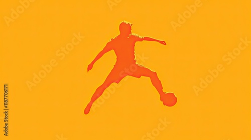 soccer, football, player, sport, game, athlete, action, motion, dynamic, energy, competition, victory, success, skill, power, speed, strength, agility, fitness, healthy, lifestyle, active, training, exercise, movement, jump, kick, ball, leg, arm, body, silhouette, orange, yellow, background, graphic, design, illustration, abstract, simple, minimal, concept, passion, excitement, fun, team, play, goal, field