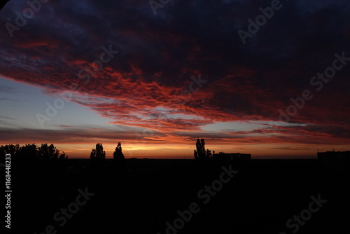 sunset, sky, sun, cloud, sunrise, orange, cloud, evening, nature, landscape, blue, light, dusk, red, beautiful, horizon, plane, night, sundown, sunlight