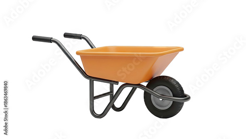 wheelbarrow, orange, construction equipment, tool, handle, frame, work tool, utility, transport, carrying, garden, construction, streetcar, cart, hand tool, industrial, vehicle, equipment, supply, machinery, labor, project, assistance, movement, modern, clean, isolated, simple