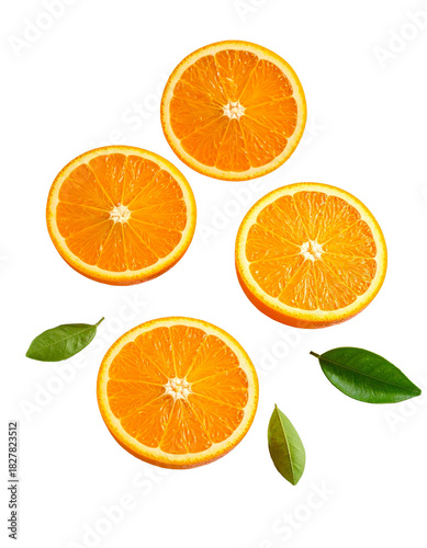 Oranges on Transparent Background - Falling Orange with Green Leaves for Product Placement - Fresh, Fruit and Clean Marketing Visual