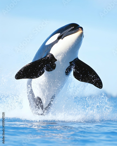Orca leaping from ocean creating splash Powerful marine mammal in action
