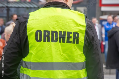 folder, security, employee, event, man, waistcoat, character, english, security, roadblock, job, german, europa