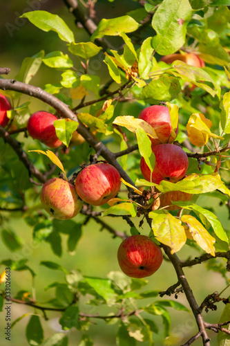 Organic apples on branch. Summer fruits.