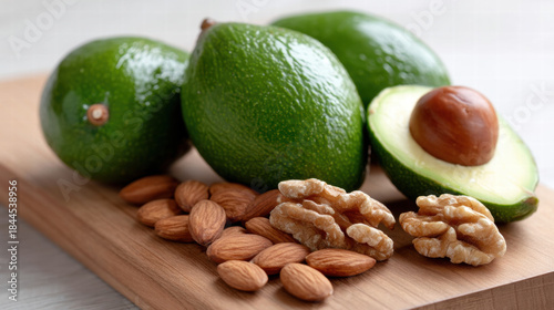 avocado, almond, walnut, organic, hair, wellness, food, healthy, nourishment, natural, fresh, green, seed, fruit, snack, diet, vegetarian, vegan, plant, ingredient, closeup, wooden, board, texture, ripe, raw, health, beauty, care, vitamin, mineral, protein, fiber, oil, antioxidant, wholesome, dietitian, dietetic, nourishment
