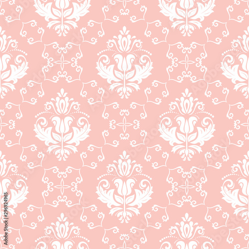 Orient vector classic pink and white pattern. Seamless abstract background with vintage elements. Orient background. Ornament for wallpaper and packaging