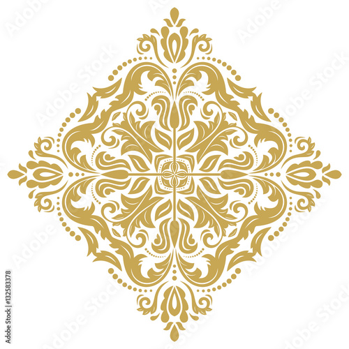Oriental vector golden square pattern with arabesques and floral elements. Traditional classic ornament. Vintage pattern with arabesques