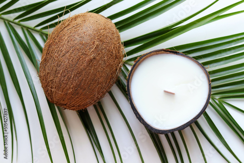 candle, coconut, seashell, original, hand-made, soy, wax, palm, white, brown, green, spa, nut, closeup, leaf, leaf, tropical, coco, gift, table, aromatherapy, beauty, wellness, nature, massage, relaxation, natural, flower, decoration, holiday