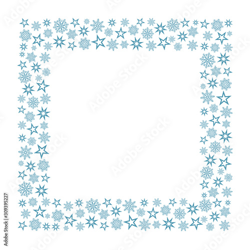 ornament border or frame with snowflake and star for Christmas holiday cards or backgrounds, stock vector illustration