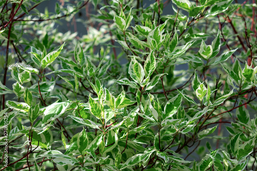 Ornamental shrub Derain White Elegantissima or Cornus alba.
