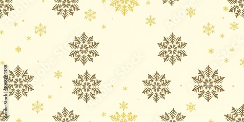 Ornate and intricate snowflake pattern on a cream-colored background with golden accents, intricate patterns, festive decorations, ornate design