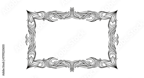 ornate, decorative, border, frame, design, element, graphic, illustration, art, pattern, tribal, inspired, intricate, detail, swirl, filigree, scrollwork, black-and-white, monochrome, contrast, abstract, traditional, ethnic, vintage, antique, stylised, ornamentation, decoration, hand-drawn, vignetting, outline, silhouette, empty, space, center, rectangle, rectangular, isolated, white background, clean, simple, elegant, sophisticated, creative, template