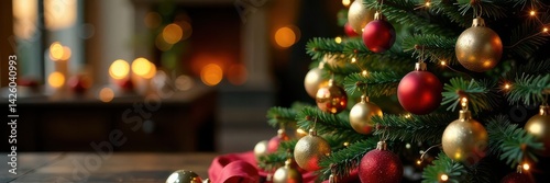 Ornate Christmas tree, glistening ornaments, luxurious table arrangement, luxury christmas, tree
