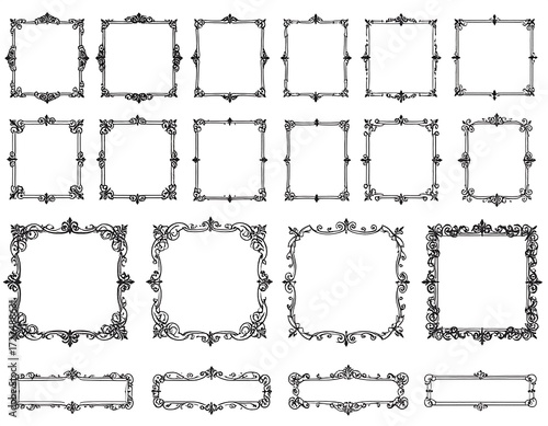 frame, decorative, ornate, vintage, elegant, border, design, pattern, illustration, vector, black, white, square, rectangle, filigree, flourishes, scroll, element