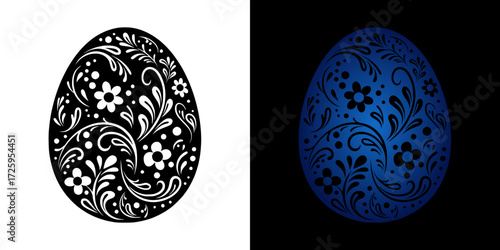 egg, easter, floral, design, ornate, decoration, art, spring, holiday, symbol, black, white, blue, pattern, celebration, colours, festival, nature, stylised, illustration, decorative, greeting, traditional, painting, springtime, graphic, vector, concept, modern, silhouette, culture, religious, vibrant, abstract, hand-made, digital, colourful, creativity, motif, festive, unique, intricate, joyful