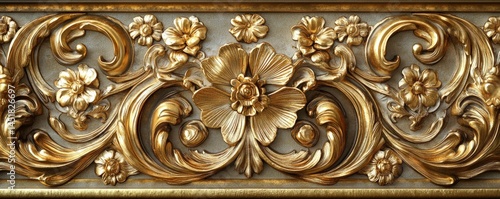 decorative, gold, floral, relief, carving, baroque, design, ornate, pattern, intricate, sculptural, embossed, molding, classic, texture, luxury, detail, classicism, vintage, elegant, ornamentation, art, craftsmanship, symmetry, composition, gold, metal, frieze, border, panel, detailing, flourishes, scrollwork, foliage, flower, heritage, beauty, history, ornamental