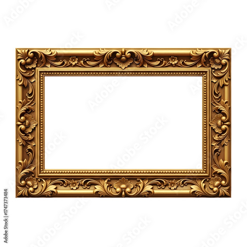 Ornate gold picture frame vintage style perfect for displaying art or photos isolated on white