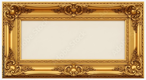 Ornate gold picture frame with intricate details and a white background