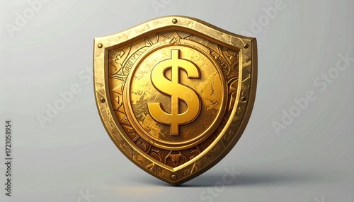 gold, shield, dollar, financial, protection, security, wealth, investment, defense, safety, money, resource, strong, wealthy, asset, finance, banking, commerce, economic, growth, value, stability, resilience, endurance, robust, hard-wearing, metal, symbol, icon, three-dimensional, render, graphic, design, ornate, decorative, luxury, image, solid, bright, classic, abstract