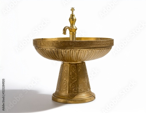 fountain, brass, gold, ornate, intricate, detailing, pedestal, embossed, pattern, elegant, timeless, beauty, faucet, metal, antique, vintage, decorative, art, craft, handcraft, gold, texture, water feature, home decor, object