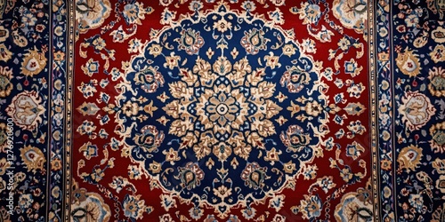 Ornate Persian rug close-up, vintage woven patterns with rich cultural history