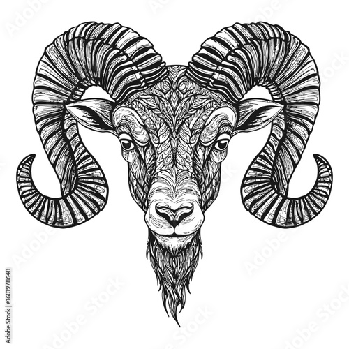 jampacked, head, ornate, vector, illustration, animal, drawing, design, art, nature, wild, wildlife, mammal, horn, isolated, graphic, vignetting, portrait, artwork, face, decorative, vintage, detailed, engraved, pattern, beard, fur, tribal, black, white, symbol, print, background, tattoo, mascot, decoration, sheep, artistic, element, retro, fantasy, goat, horn, zodiac, mountain, male, pecora