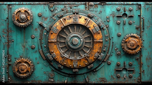 door, metal, gear, rust-eaten, teal, design, background, machine, panel, industrial, art, graphic, decor, abstract, texture, antique, mechanism, vintage, ornate, detail, pattern, technology, aged, futuristic, creative, paneling, image, concept, wall, surface, structure, modern, artistic, retro, background