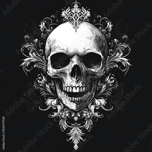 skull, graphic, design, ornate, art, black, white, tattoo, vintage, style, illustration, decoration, image, background, pattern, decor, floral, ornament, print, modern, abstract, decorative, intricate, symbol, death, horror, gothic, dark