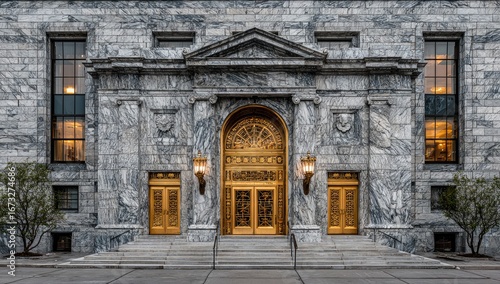 stone, facades, building, entrance, door, gold, marble, arch, window, column, stair, light, exterior, architecture, classic, grand, detail, ornate, detailed, public, government, city, historical, museum, library, elegant, formal, monumental, structure, granite, patterned, illuminated, daylight, evening, concrete, step, detail, calm, grandiose, dignified, historical building, civic, entranceway, view