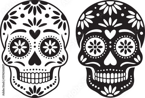Ornate Sugar Skull Vector Art Decorative Día de los Muertos Skull Design Colorful Calavera Skull Illustration Floral Sugar Skull Silhouette Traditional Mexican Skull Festival Graphic