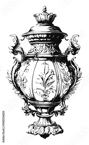 Ornate Vintage Urn Illustration with Intricate Floral Design