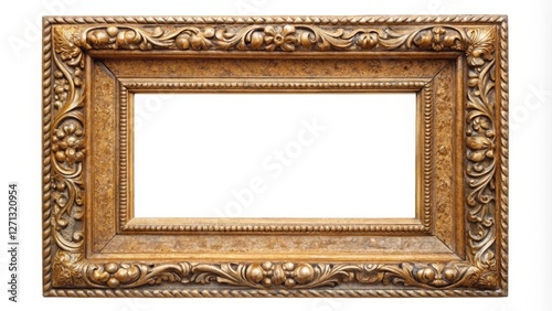 frame, wooden, ornate, gold, brown, rectangle, border, design, decorative, carved, detail, texture, background, isolated, white, studio, photo, object, template, element, vintage, antique, classic, art, craft, wood, surface, pattern, embellishment, floral, motif, image, graphic, resource, illustration, composition, presentation
