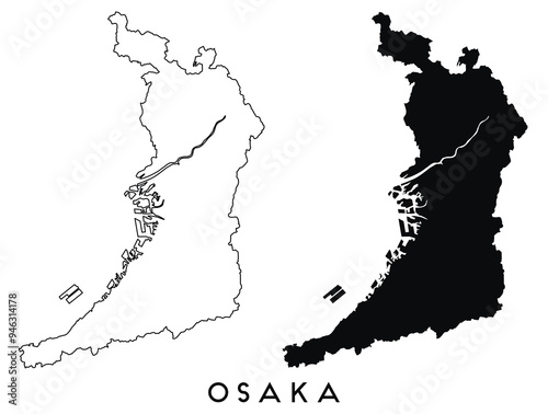 Osaka map outline and black silhouette vector