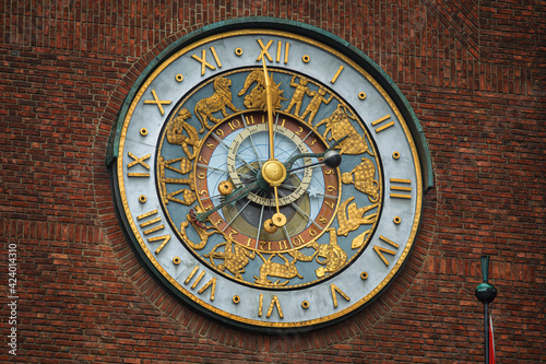 Oslo, Norway - 01 AUG 2014: Astronomical Clock of Oslo city hall building