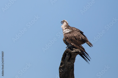 Osprey perched on dead tree