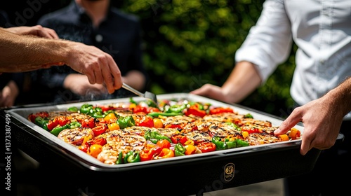 Outdoor barbecue gathering backyard food photography summer day close-up view culinary delight